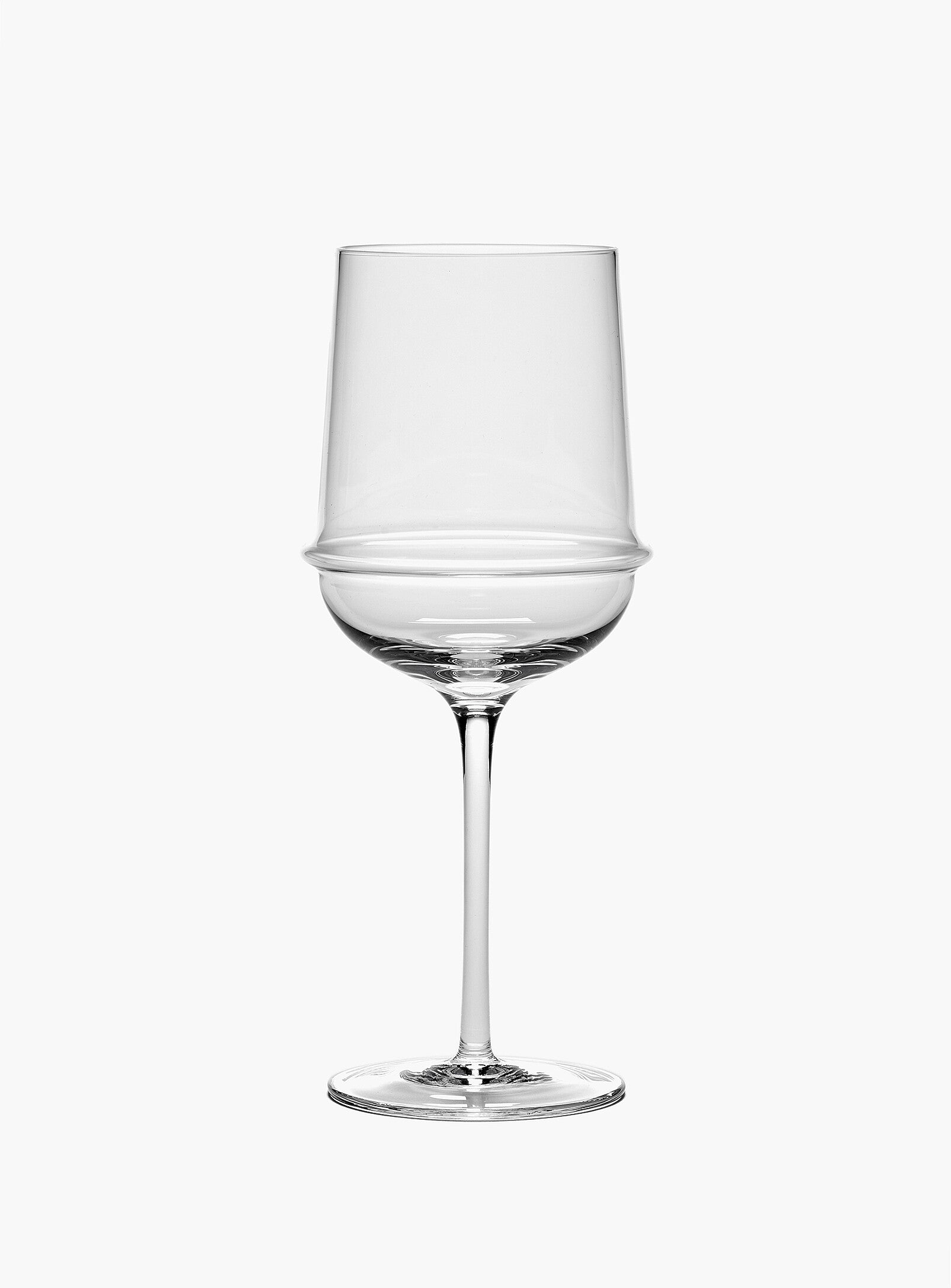 These crystal clear white wine glasses distill sophisticated simplicity, where each detail elegantly enhances your tasting experience. These blown-glass models created by acclaimed American designer Kelly Wearstler stand out for their quality and unique character, with an embossed line beautifully aligned on each piece in the Dune collection. This set skilfully blending form and function will add a touch of refined style to any hosting event, both big and small.